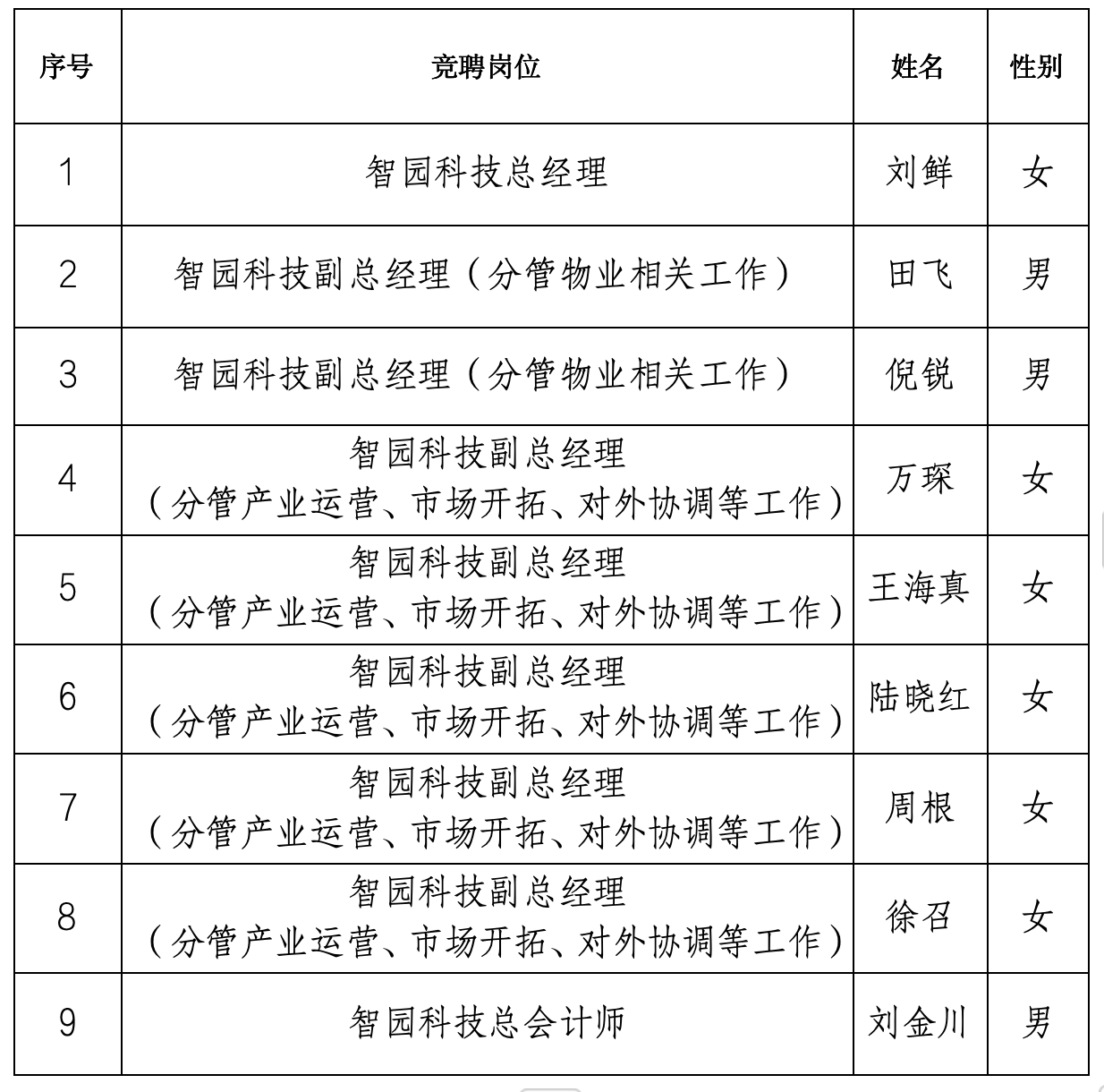 ????為全面貫徹落實黨的干部路線、方針、政策,激發(fā)武漢智園科技運營有限公司(以下簡稱“智園科技”)經(jīng)營層活力,確保公開競聘的公平、公正和公開,根據(jù)《關于開展武漢東湖高新集團股份有限公司智園科技經(jīng)營層團隊公開競聘的通知》(東湖高新人字〔2025〕12號)的要求,現(xiàn)將本次競聘資格審查通過人員名單公示如下(按姓氏筆畫排序):